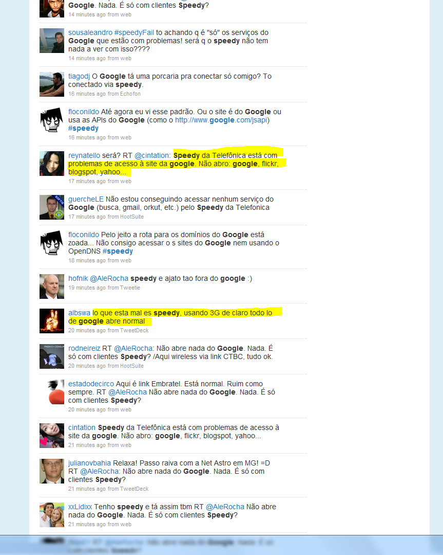 Eu infelizmente estou sem acesso a diversos serviços do google e não estou colocando a culpa no google, afinal eu sei que o problema está na Speedy com relação ao acesso internacional, pois qualquer site nacional abre que é tiro e queda!