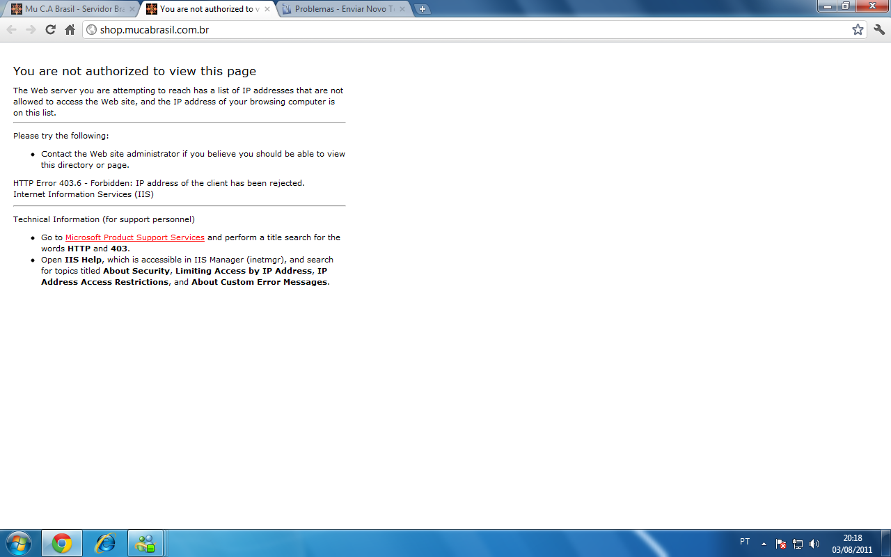 HTTP Error 403.6 - Forbidden: IP address of the client has been rejected.