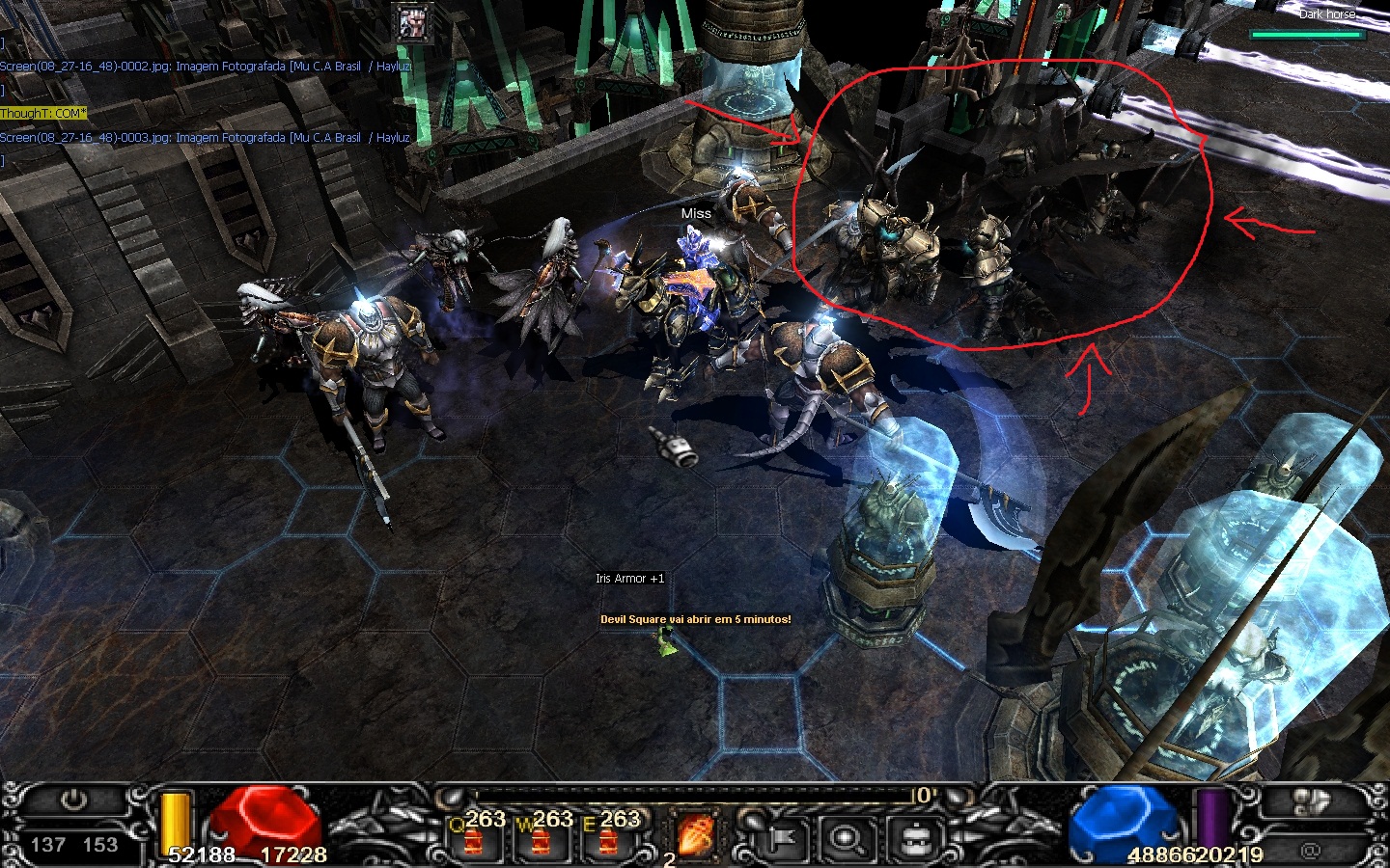 Venho da uma pequena sugestão no spot de kantru 3 perto dos raios...esses mobs que eu marquei de vermelhos são os mais forte nesse spot, gostaria de sugerir se é possivel colocar eles para nascer um pouco mais proximo dos outros ao lado para ficar melhor para upar e aproveitar mais o spot, alguns dias atras sugeriram para outros spot e gostaria de saber se nesse é possivel... pra SM e MG ele é bom... mas um DL upando nele raramente a skil chega nesses mobs porque eles nascem um pouco longe, só uma sugestão.
