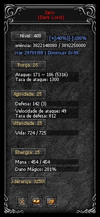 Liderança (command) do Dark Lord não acumulativo, a cada reset os pontos neste atributo são resetados e redistribuídos automaticamente sob a fórmula: Número de resets X 125 pontos.