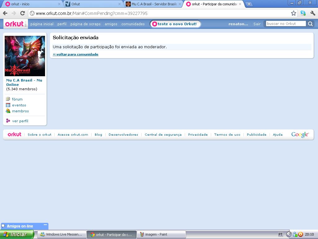 Venho a 2 meses tentando entra na comunidade oficial do mu c.a
