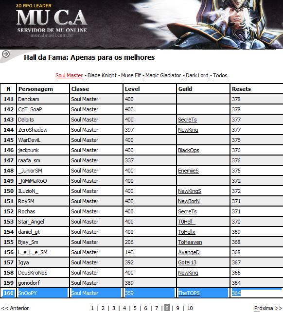 Apesar de o Bar de lorencia ser uma área de assuntos diversos, ela não tem como finalidade os jogadores divulgarem o ranking de seus chars.