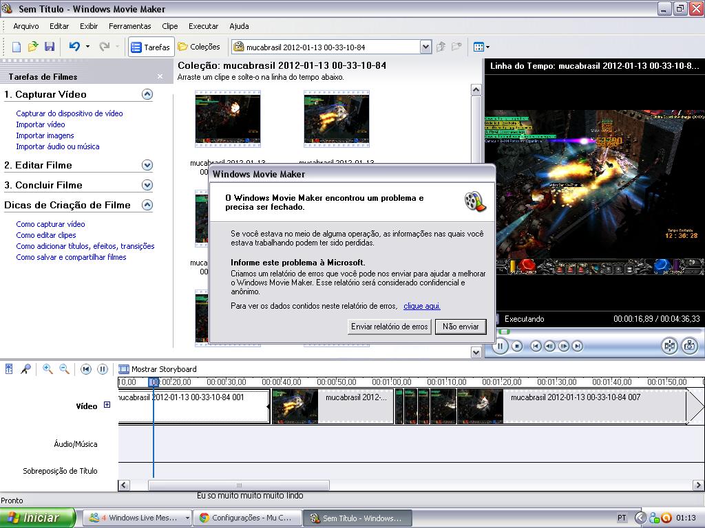 Eu fiz um video do BC ,Só que quando eu vou editar o video da pall no movie maker vou postar uma print