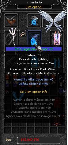Eu comprei 1 set Enis e eu equipo todas as 4 partes eos options nao aparece em azul.