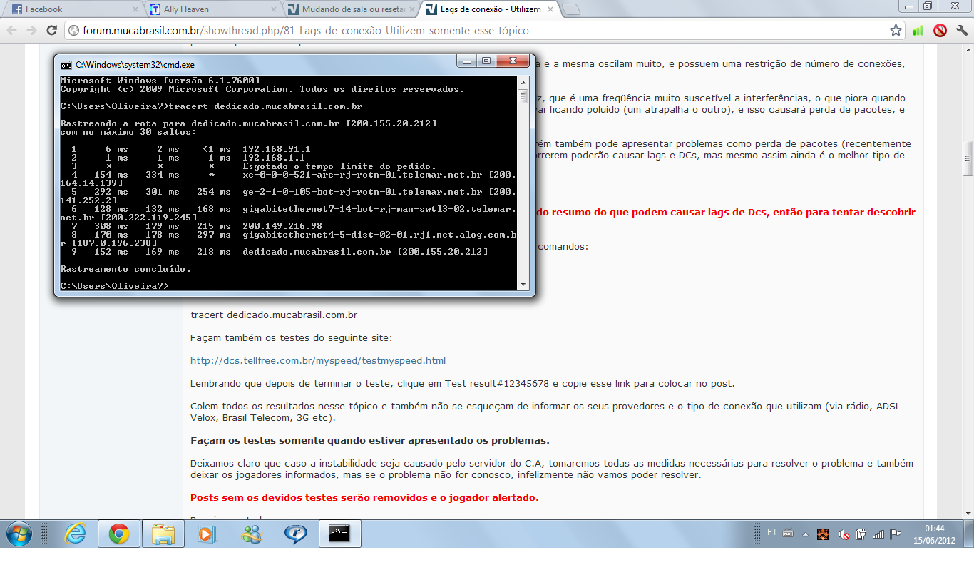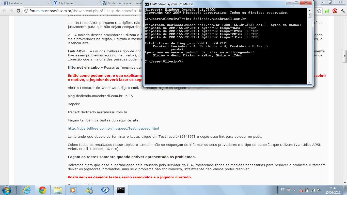 Seguinte, para tirarmos as dúvidas, faça os testes de conexões desse tópico: http://forum.mucabrasil.com.br/showt...se-t%C3%B3pico