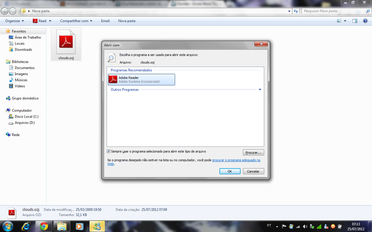 Daí eu cliquei ABRIR COMO Adobe Reader.