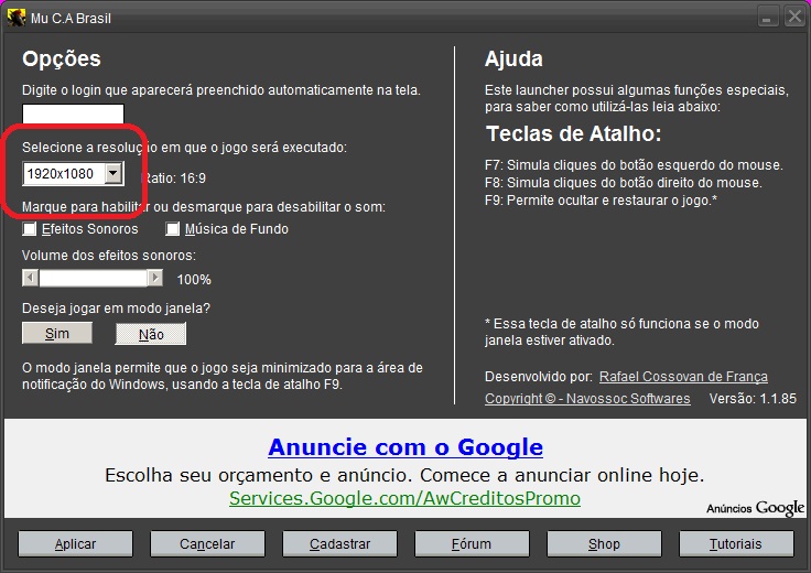 é so vc clicar no mu vai abrir 1 janelinha antes de vc clicar em iniciar vai em opçao