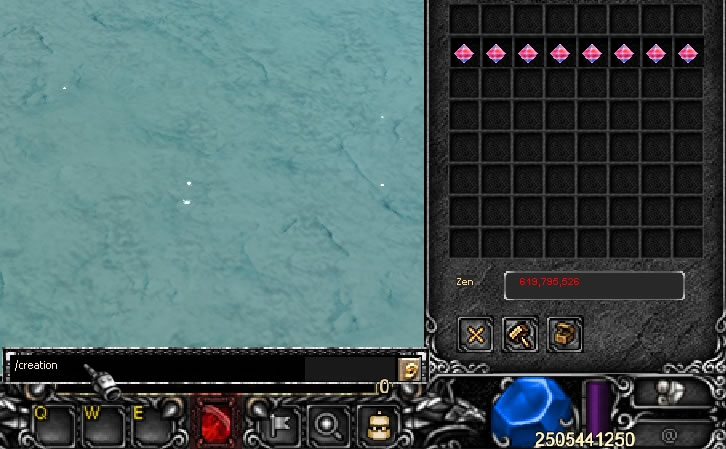 Na figura abaixo vamos transformar 8 joias creations em 8 creations virtuais (CV) usando o comando /creation.