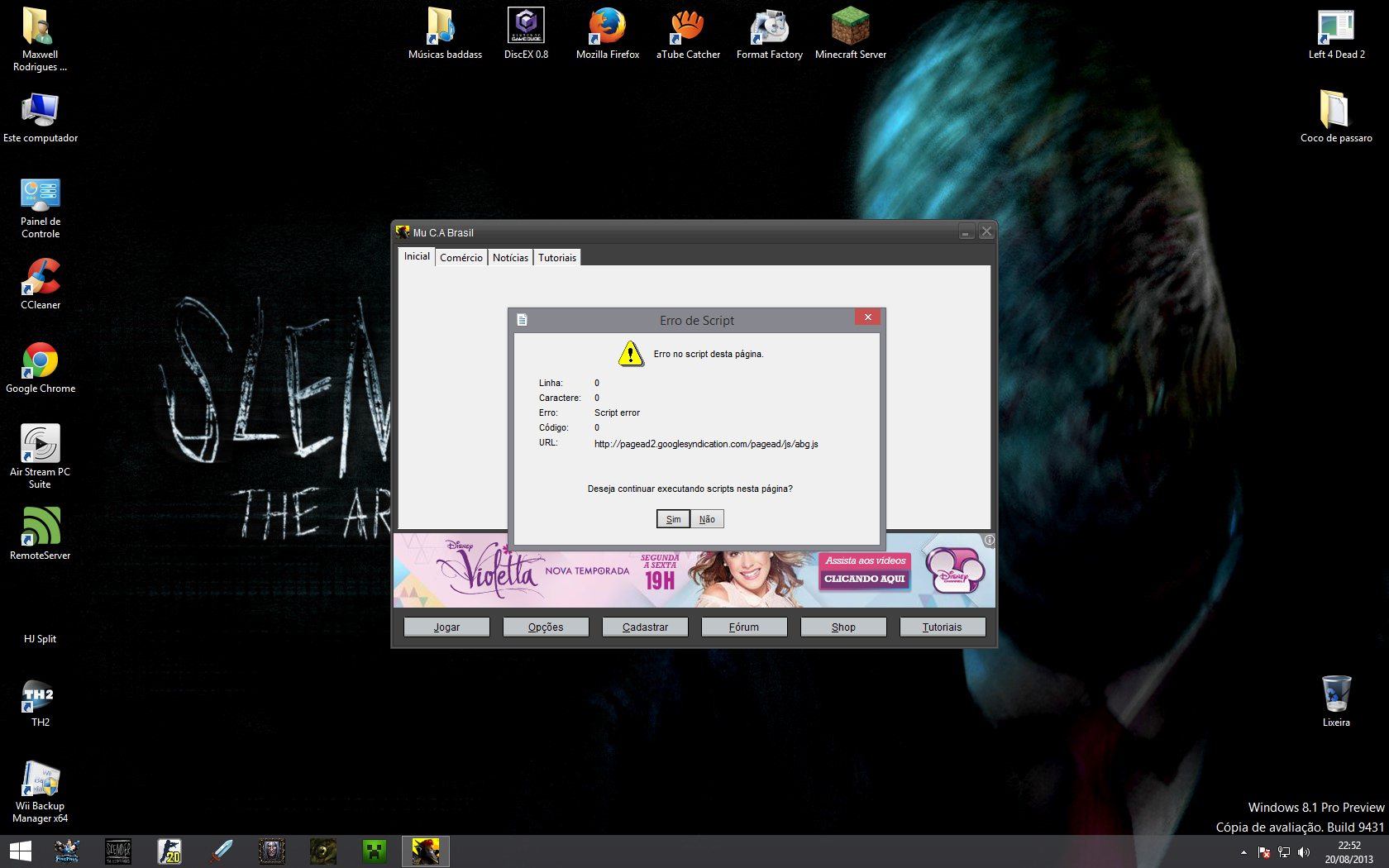Pessoal estou com um problema, pois quando abro o Launcher, logo de cara da um erro: