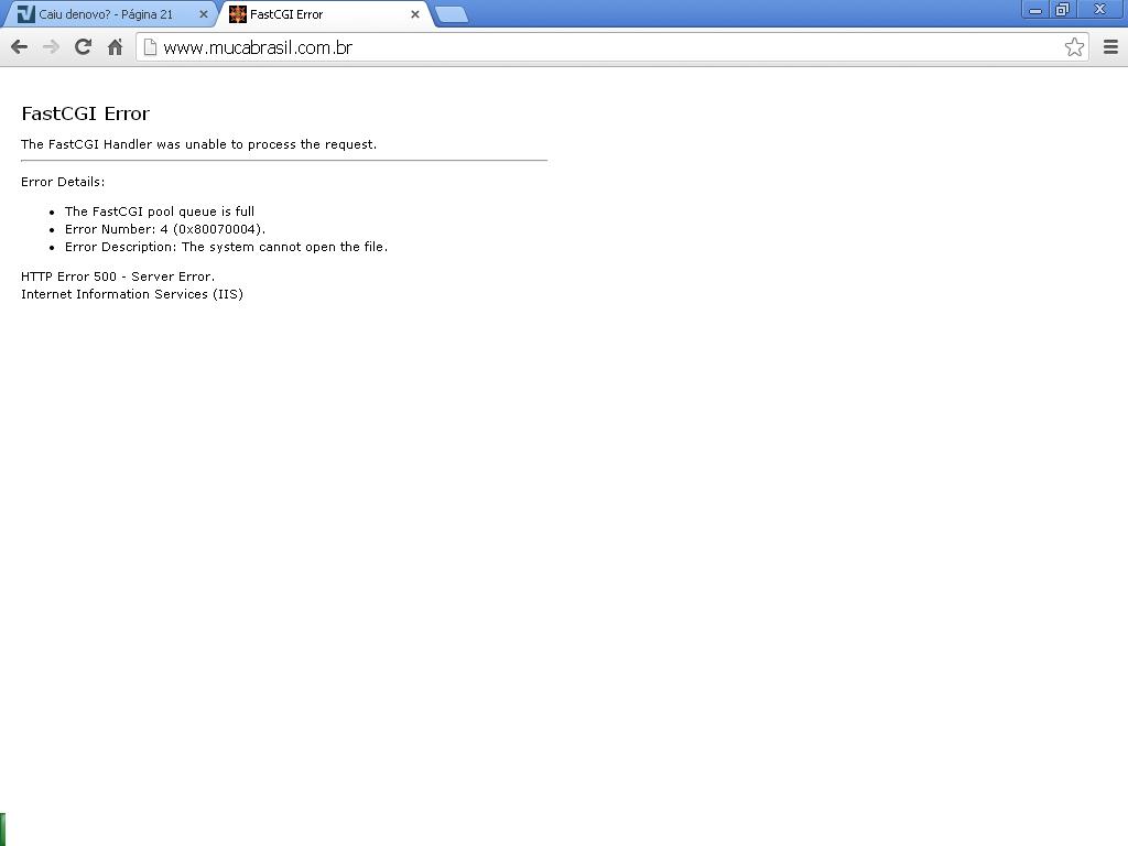 The FastCGI Handler was unable to process the request.