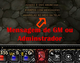 Admins e GMs anunciam eventos com mensagens em amarelo que aparecem pouco abaixo do meio da tela de todos os jogadores!