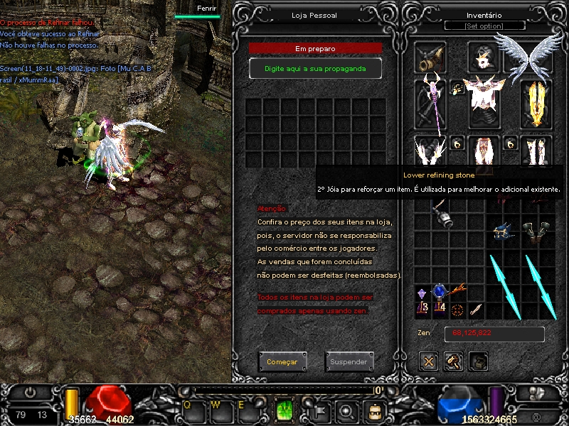 Bom dia pessoal, notei que a loja pessoal esta bugando quando por exemplo uso a CM ou faço refine, após fazer refine notei que sumiu 2 crea 1 pote small de hp ( que deixo para abrir a loja) 1 symbol k6 e 1 pendant broy, msm relogando os itens não voltaram a minha personal store, se os ADM puderem conferir as logs eu agradeço, qdo tentei 1 capa ontem notei que o pendant sumiu, e hj ao fazer refine notei que as creation, o symbol e ate a pote que uso para abrir loja sumiram.