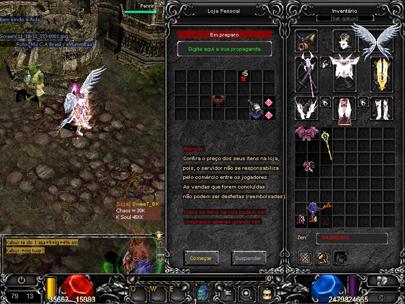 E não, eu não vendi o pendant a zen, pois so abro loja com a pote, uso a loja somente para por itens qdo estou cm inventario cheio e por ai vai.