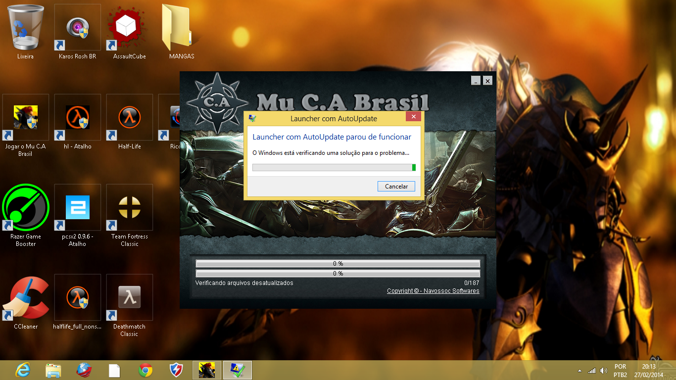 sempre jogei o mu normal mais hj ta dando erro ta caregando o laucher depois ele fecha e mostra erro no aplicativo no windows alguem me ajuda quero upa !!!!!!!!!1