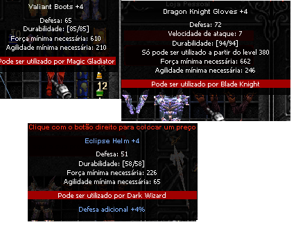 E uma print para cada item mostrando os detalhes do item (level, durabilidade, etc).