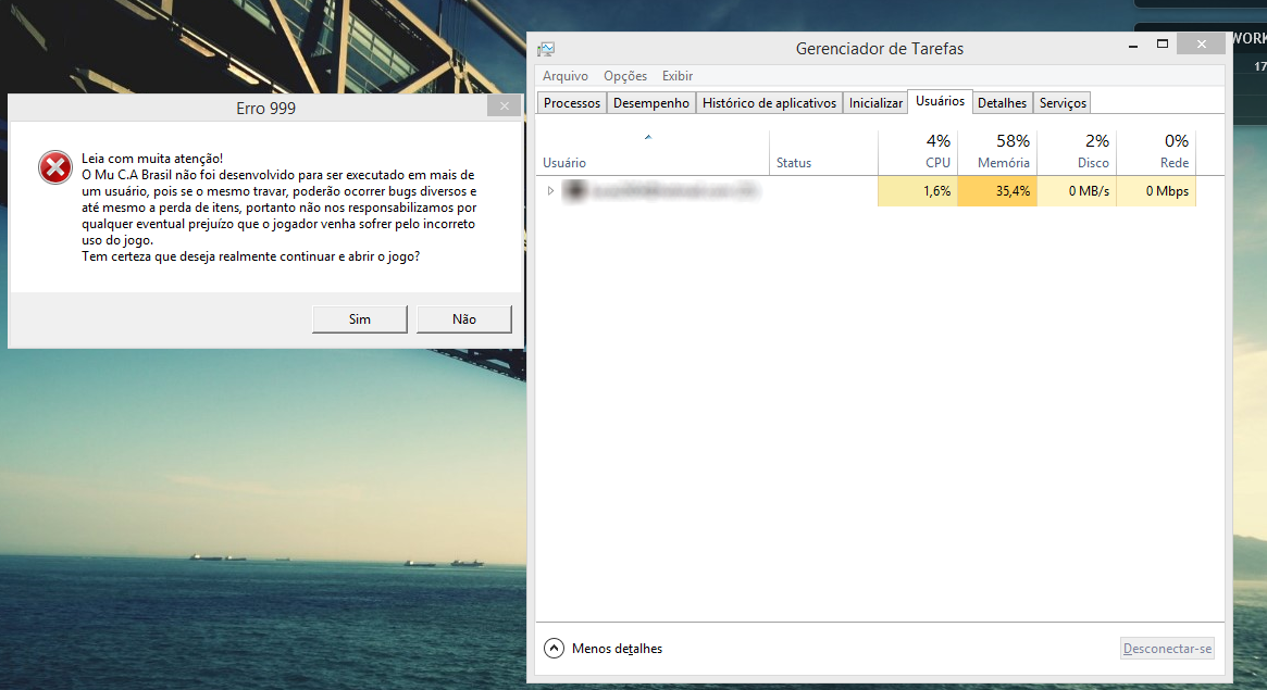 Instalei o Mu em meu Windows 8.1 mas está acusando ter mais de um usuário e estou apenas em um,
