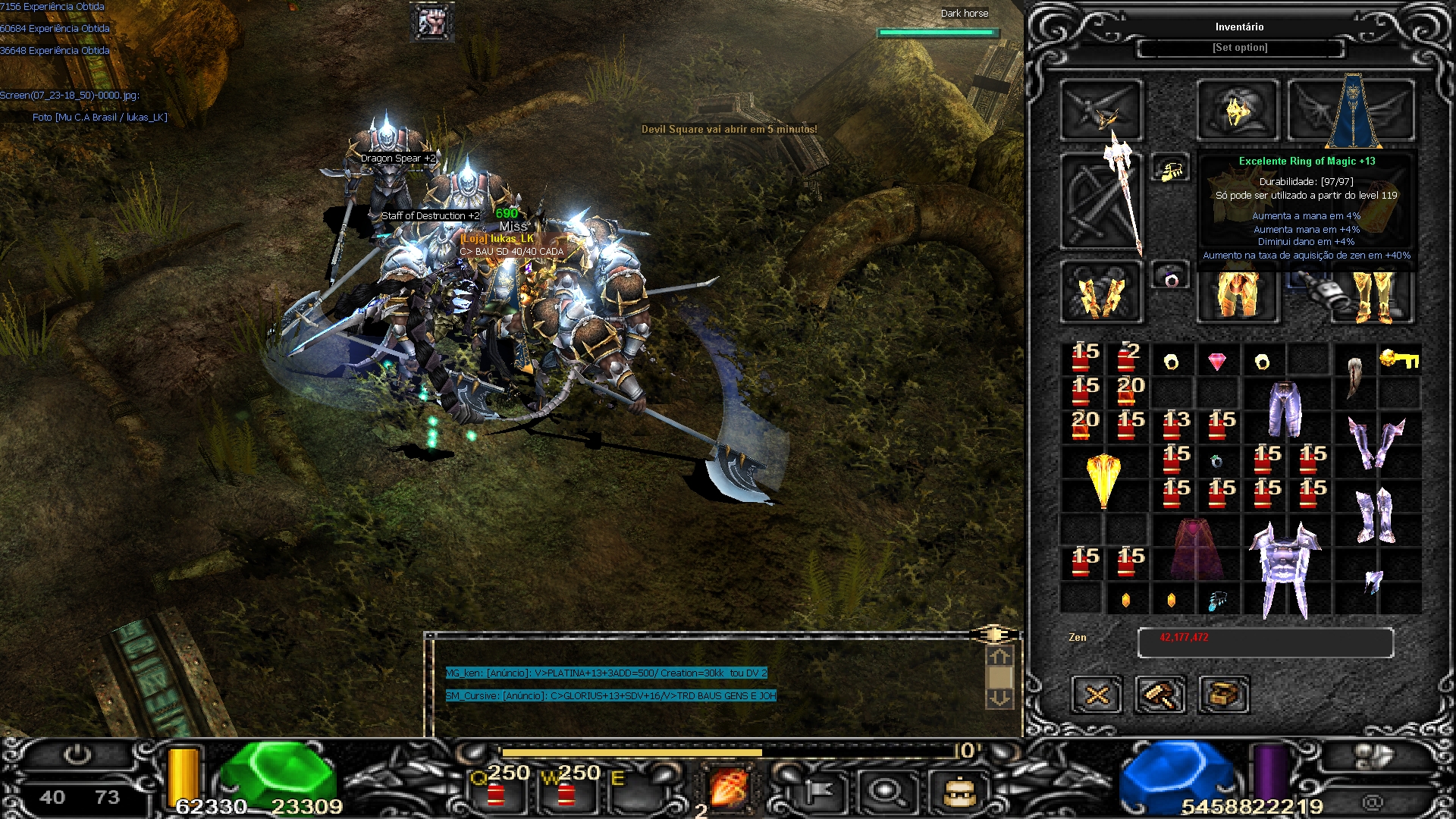 Um dos adicionais de Mana é opcional Excelente (Aumenta Mana em +4%), que pode existir em sets, shields e rings.