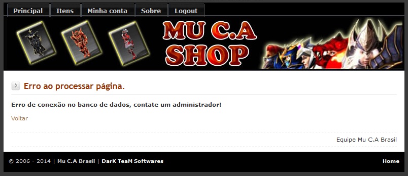 oque é isso quando vou loga no shop aparece isso Erro de conexão no banco de dados, contate um administrador!