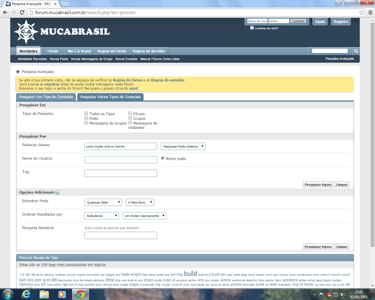 Assim como fez login para postar, é necessário estar logado para utilizar a Pesquisa rápida do Fórum.