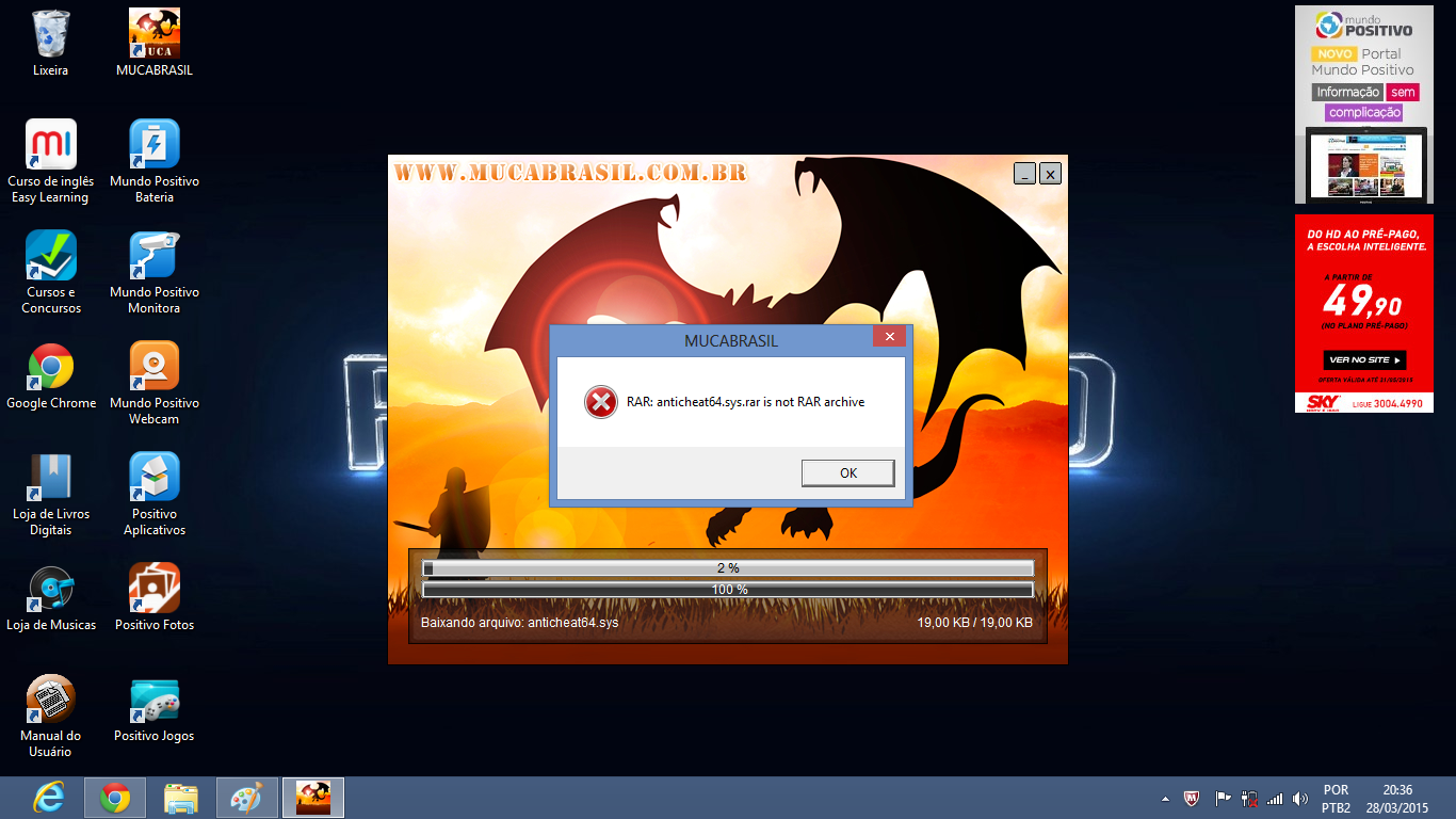 Por algum motivo os arquivos estão corrompendo durante o seu download (problema de conectividade), para tentar contornar isso, poderá baixar e extrair os arquivos de atualização que estão em: http://update2.mucabrasil.com.br