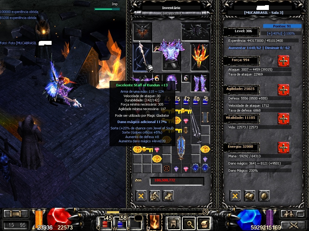 Bom, venho aqui postar a minha indignação sobre os eventos do servidor, não consigo entender o porque é necessário deixar os "monstros" dos eventos tão forte assim ao ponto de não conseguir matá-los... mesmo você tendo 200 resets... 200 resets leva muuuuuito tempo para conseguir, ai você tem um set TOP, uma staff BOOA e um STATUS FULL e mesmo assim não consegue matar um só bicho que no meu caso foi a estatua de cristal no blood castle, olha que comecei a atacar ela faltando 8minutos para terminar o BC :DD
