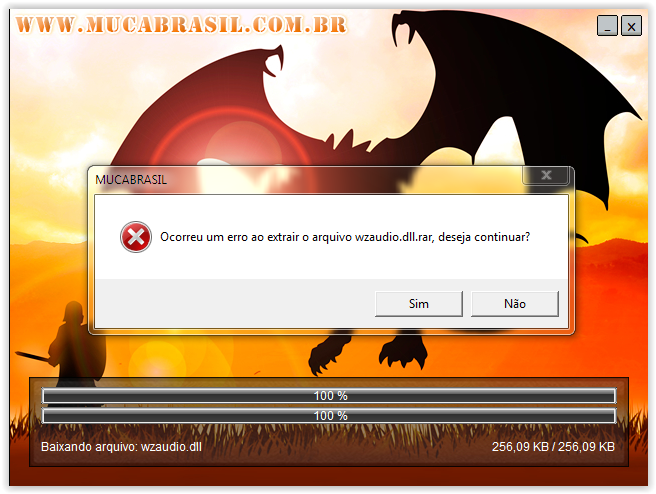 Quando dá o primeiro erro RAR, se dou OK ele dá os próximos erros e fecha automaticamente.