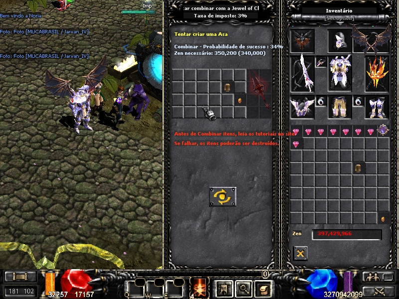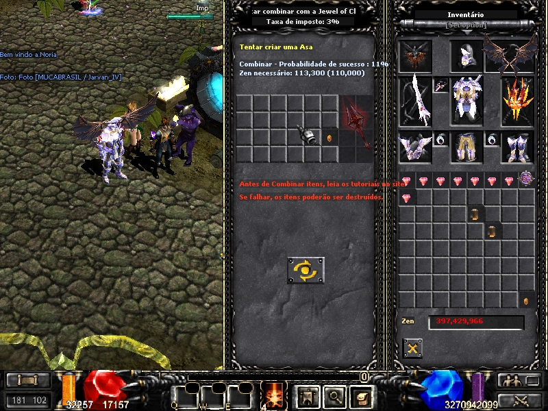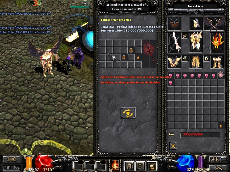 Resultado: Falha, mas as lifes não foram destruídas. Tanto o íris armor quanto o item chaos reduziram seus level / options.