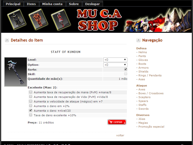 Olá galera/Administração, estava comparando uns itens do SHOP e do servidor e me deparei com um pequeno problema na minha STAFF OF KUNDUN, vou postar as imagens para vocês mesmo verem!