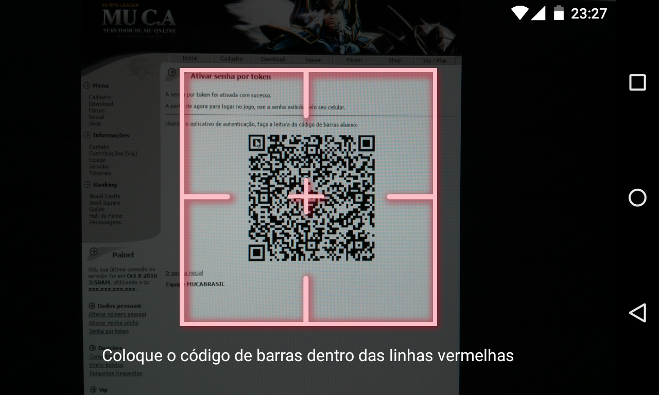 Lembre-se: toda e qualquer forma de compartilhamento dos dados da conta é insegura, portanto logo após ler o código em um dispositivo, feche a página onde foi gerado o código de barras.