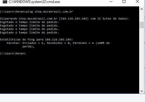 Após cada comando, tire uma screenshot da tela (são 6 no total) e poste.Código:tracert shop.mucabrasil.com.br