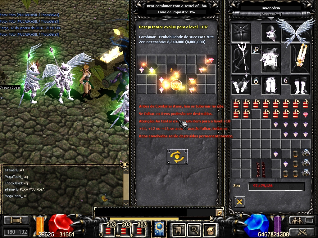Hoje estava pondo o meu shield Buckler para +13 (Sort+dim+ref) , a CM brilhou e não fez a fusão , tentei tirar o shild e não consegui..