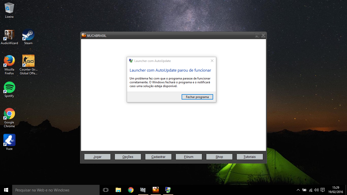bom deu saudade e tentei voltar a joga mu ca, baixei normalmente o jogo e instalei. na hora que eu tento abrir o launcher ele trava totalmente e da um erro "launcher com autoupdate parou de funcionar".