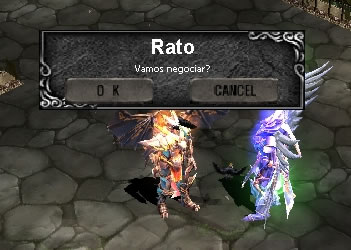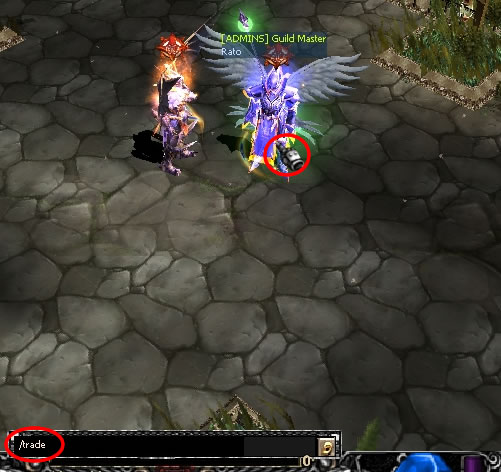 1 - O jogador se aproxima de outro jogador e digita o comando /trade, e aponta o cursor do mouse sobre o jogador que deseja fazer o trade e pressiona a tecla "ENTER" para enviar a solicitação.