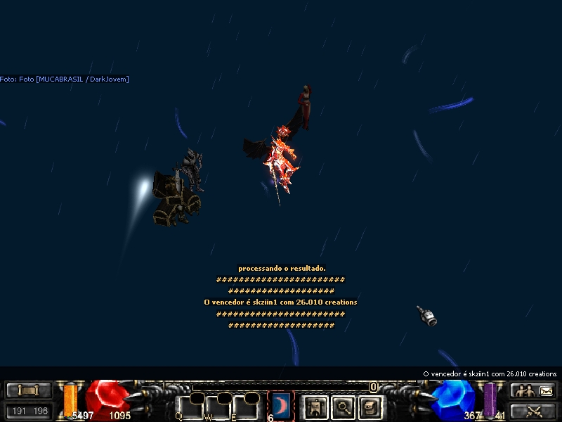 Por algum motivo o jogador skziin1 ficou away logo após a sua vitória, aguardei por algum tempo o seu retorno, mas não respondeu a nenhum dos chamados, dessa forma, para retirar o seu prêmio o jogador deverá enviar um e-mail para suporte@mucabrasil.com.br utilizando o mesmo e-mail do cadastro, informar o login, número pessoal e quais são os prêmios escolhidos, lembrando que as configurações e itens escolhidos, devem ser as mesmas anunciadas no evento.