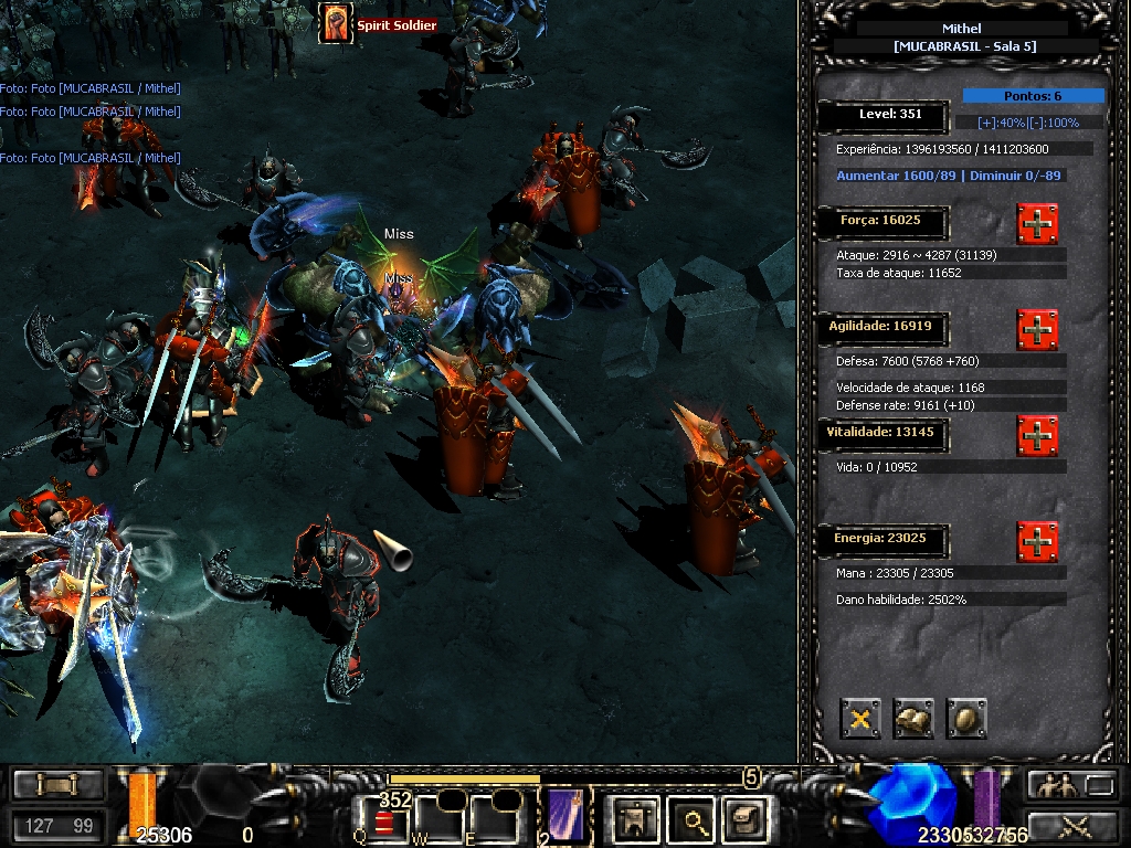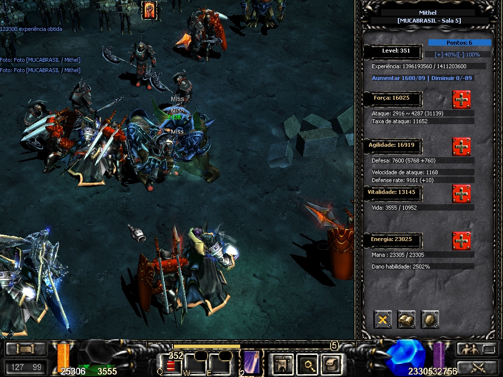 Atenção: Devido a uma limitação técnica do jogo em não ser possível exibir corretamente valores que estejam acima de 65536, recomendamos que utilizem o comando /status para consultarem a quantidade real de sd, vida, mana.
