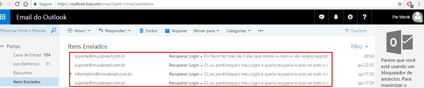 Quando enviar e-mails, conforme previamente orientamos a todos, não envie vários e-mails iguais no mesmo dia, isso não fará com que o e-mail seja lido mais rápido, poderá ser confundido com SPAM e com isso possivelmente nem chegar.