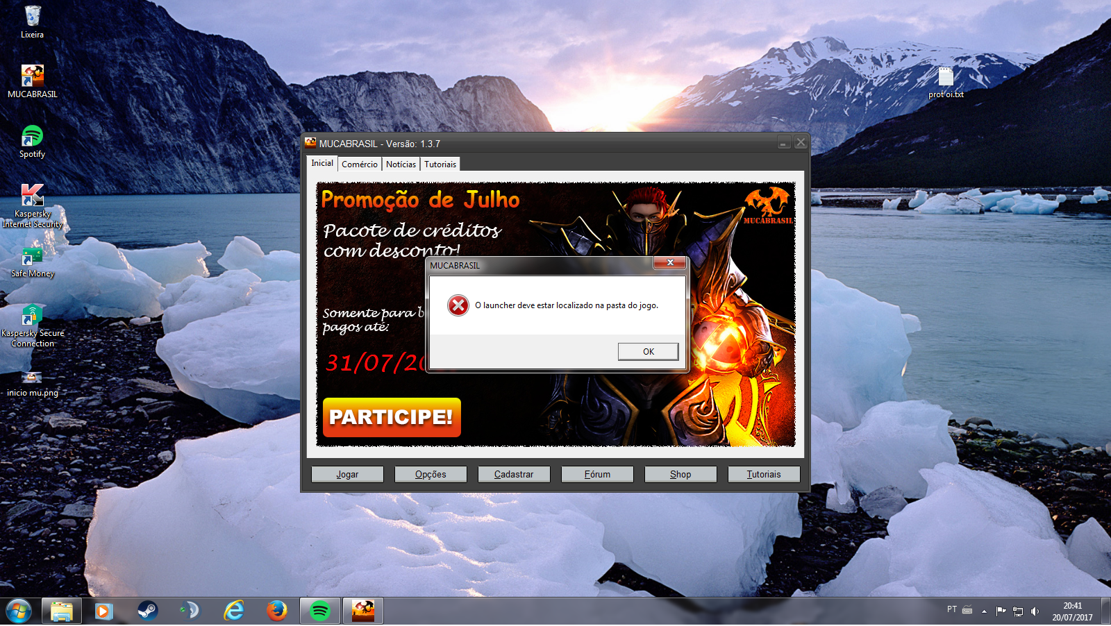 fiz todas as atualizações do windows 7 e baixei normalmente, instalei o mu e quando abro o launcher o mesmo nao carrega as barras da atualização e informa que deve estar na pasta do jogo, onde esta o laucher se nao esta na pasta do jogo, me ajudem