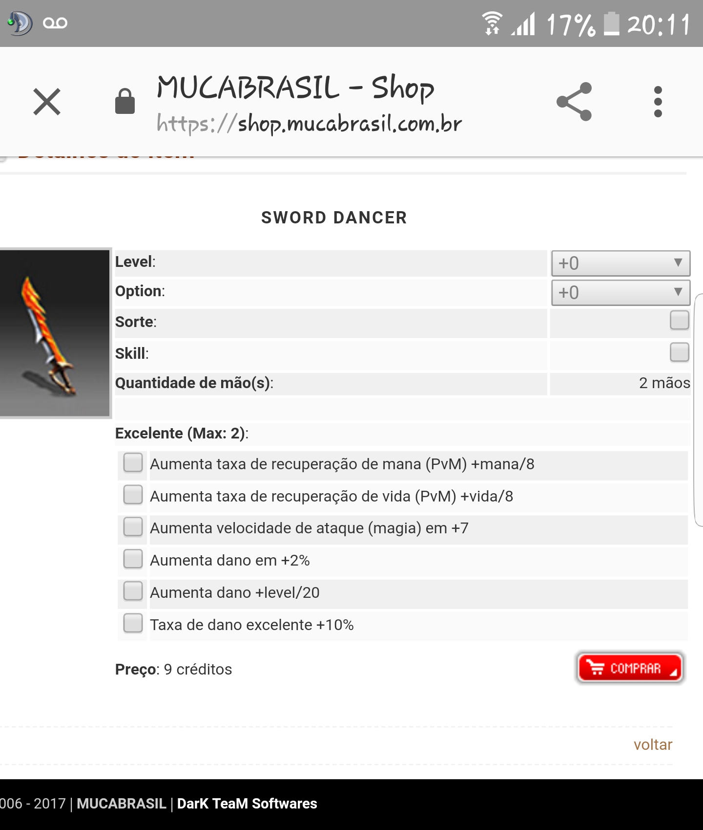 A Sword Dancer é arma de uma mão, no shop diz que é de duas.