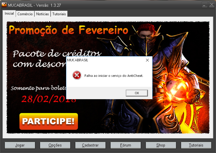 Estou retornando ao game mas estou com um pequeno problema, toda vez que tento jogar sempre tenho erro que acaba me impedindo, já tentei solucionar varias e varias vezes pq adoro esse mu, porem sempre sem sucesso, bom vamos la para ver se alguém consegue me ajudar, Eu estalo o mu e sempre aparece a mensagem de erro ''não foi possível verificar a existência de atualização pára esse jogo '' em toda santa vez, meu sistema operacional esta em dia tudo certinho meu pc tb é mais que o suficiente para rodar, com com toda a pesquisa e observações que fiz acabei notando que quando instalo o cliente sempre vem coisa faltando tipo o ant cheat , então tentei forçar o mu a abrir no modo sandbox ai veio a mensagem de erro '' não foi possível encontrar o serviço do ant cheat''