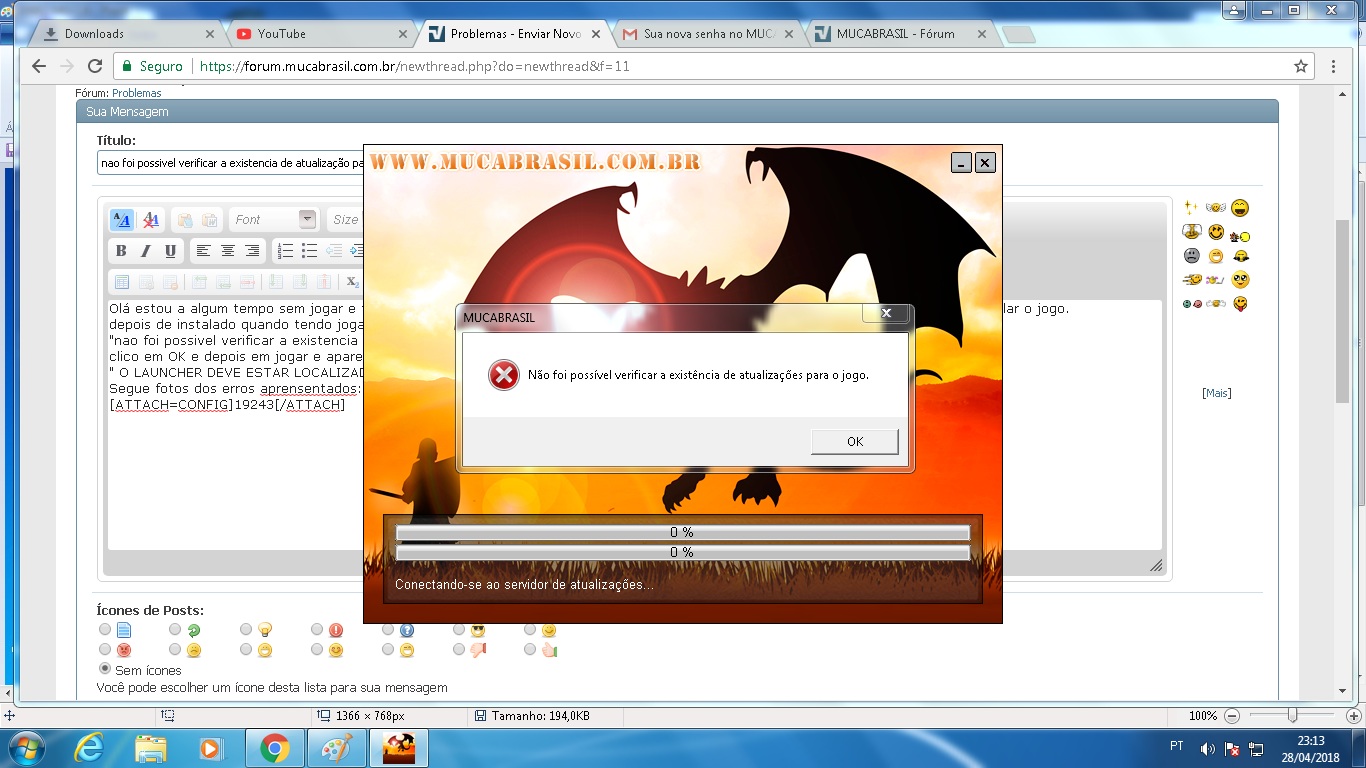 Re: nao foi possivel verificar a existencia de atualização para o jogo mu ca