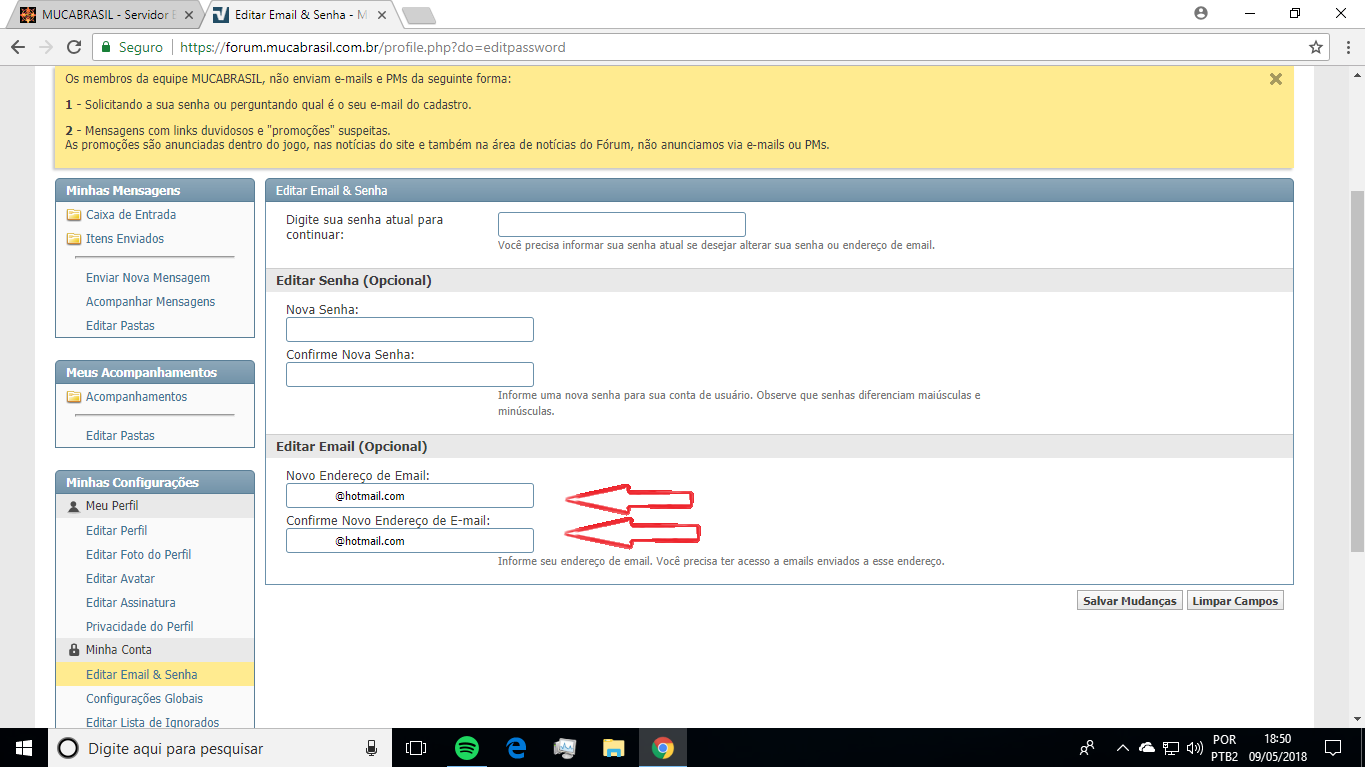 Anexo 19262 pq Nao consigo alterar o email ? foi desabilitado ? Ao clicar la nao consigo editar nem apagar o email que ja esta ali.