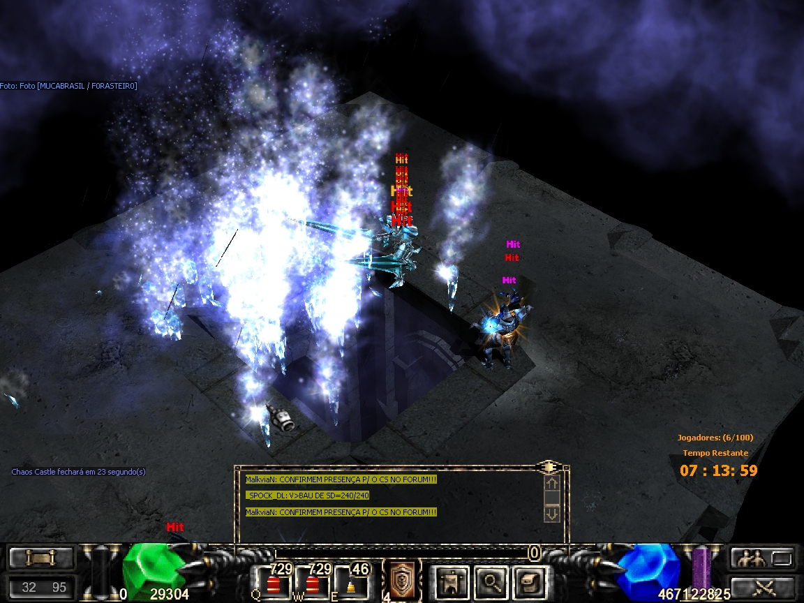 Olá, participei do Chaos castle agora as 13:30 e faltando exatos 7 minutos, para acabar o evento com 6 jogadores ainda vivos, apareceu a mensagem de encerramento do evento, como é possível ver no canto inferior esquerdo da print, após a mensagem dos 30 segundos o evento encerrou e todos foram movidos para devias.. já e a segunda vez que acontece comigo isso da pra dar uma olhada. @rafael Anexo 19595