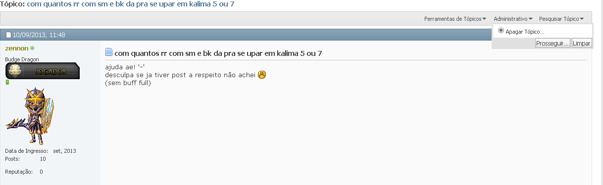 e aproveitando a criação deste mesmo, tenho alguns posts antigos que não consigo excluir, seleciono a opção "apagar tópico" e pressiono prosseguir, mas nada acontece.