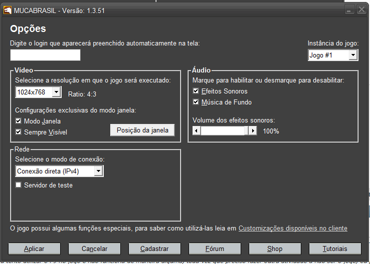 Vai nas opções do launcher e veja se o "Modo Janela" está selecionado: