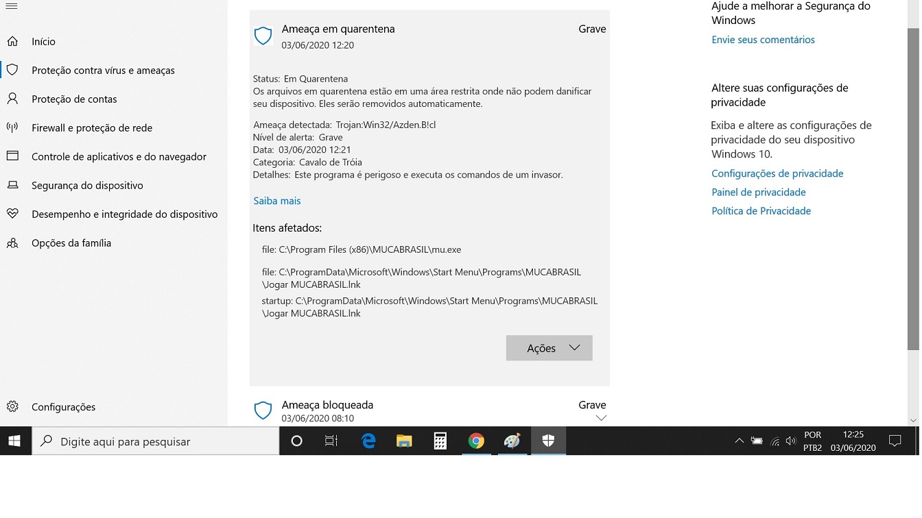 Forneça mais detalhes para que eu possa reportar o arquivo para a Microsoft analisar e marcar como confiável.