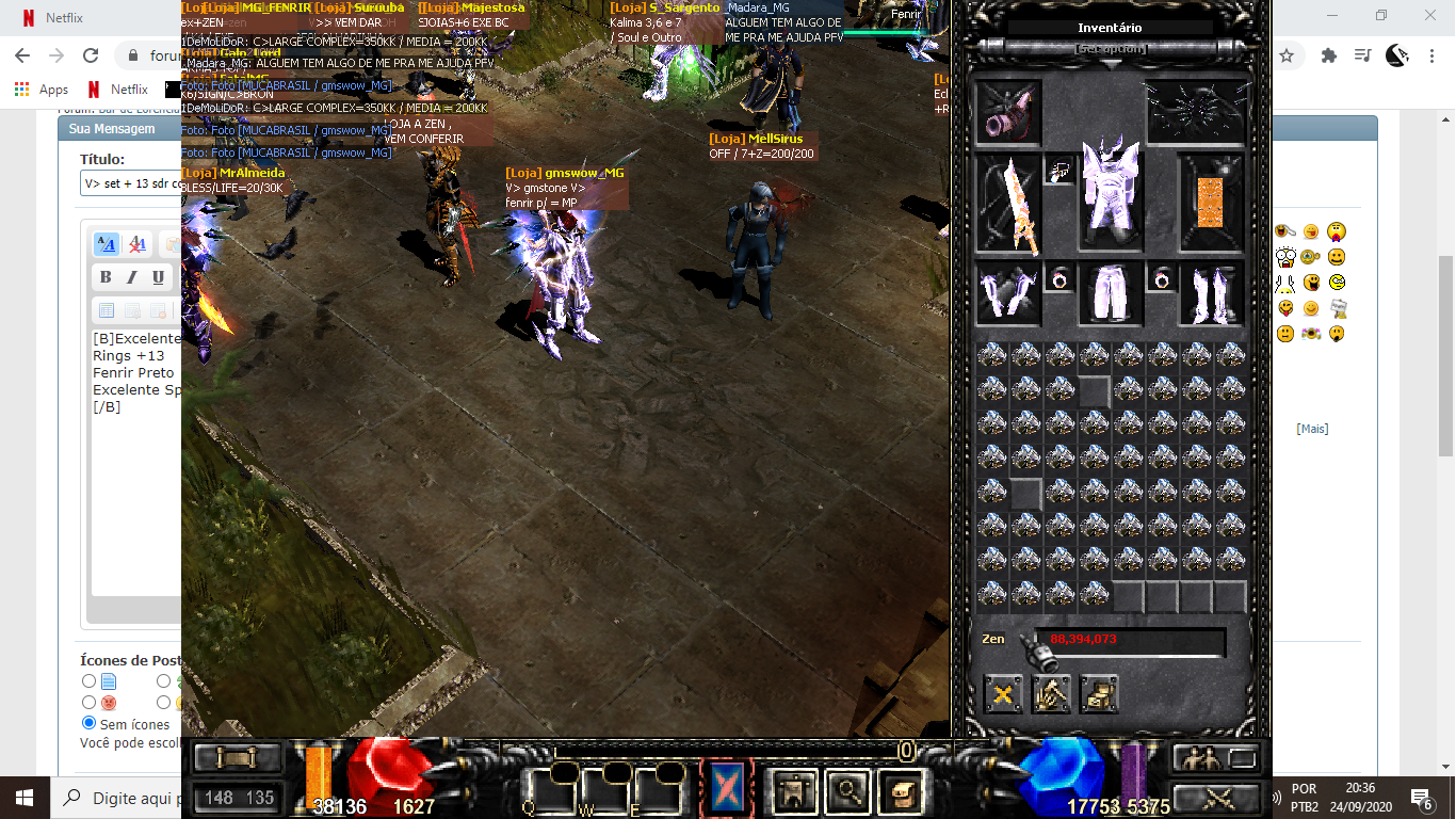 Excelente Strow Crow completo +13 sdr Rings +13 Fenrir Preto Excelente Spiked Shild +13 srd gmstone Anexo 20411