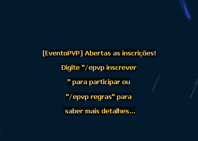 Os comandos citados anteriormente só funcionam se o evento estiver ativo, quando o evento for ativado a seguinte mensagem aparecerá na tela para todos os jogadores: