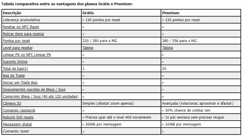 Comandos para player Premium