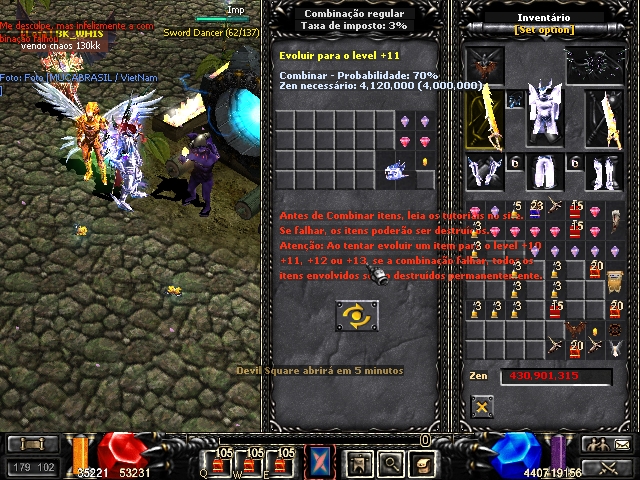 Item +11 = Taxa de sucesso alterada para 80% (custo: 40kk de zen)