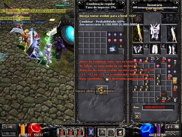 Item +12 = Taxa de sucesso alterada para 75% (custo: 60kk de zen)